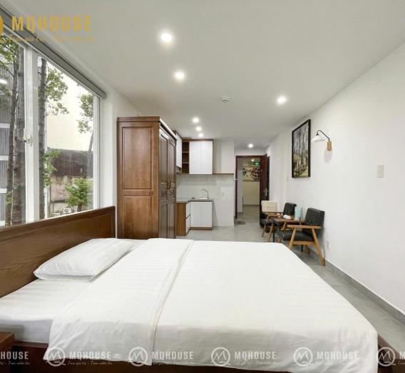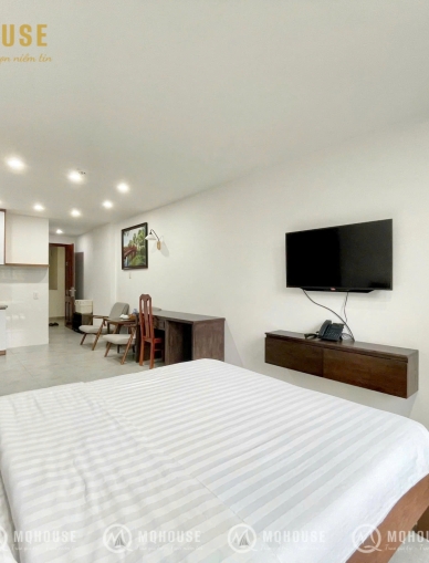 Smoking 1Căn hộ dịch vụ trung tâm sân bay TSN, cách công viên HVT 30m đủ nội thất, TH cáp, điều hòa,máy giặt cửa trước,tủ lạnh,bếp từ,chăn ga gối đệm..hầm để xe, thang máy 750kg,bảo vệ 24/7, dọn phòng , nhà 3 mặt thoáng tất cả các phòng view công viên, điện nước riêng theo giá nhà nước , diện tích từ 30-45 m2 công trình có pccc